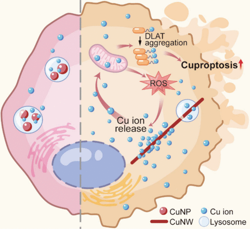 “铜死亡”是一种由于细胞内铜稳态被破坏而导致的新型细胞程序性死亡方式,这种新的细胞死亡方式为建立基于破坏胞内铜稳态的癌症治疗方案提供了新思路。大多数研究发现通过铜纳米材料载体可以将铜离子递送到细胞内,进而破坏胞内铜稳态诱导细胞发生铜死亡。但是,这些铜纳米材料在胞内释放铜离子的生物学过程仍不清楚。