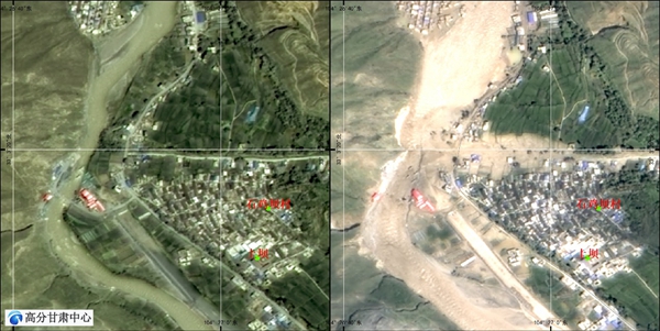 为了及时掌握灾区实际情况,中国科学院西北生态环境资源研究院(简称西北研究院)与高分辨率对地观测系统甘肃数据与应用中心(简称高分甘肃中心)立刻启动卫星应急响应机制,根据相关灾情信息,申请和协调高分一号、高分三号、高分四号、高分六号、北京二号等卫星对文县、武都、舟曲、迭部等灾区紧急、密集观测成像。综合分析气象云图、地形地貌、流域水系、交通路网、居民分布等数据,对灾后卫星影像数据快速处理,与灾前卫星影像数据精准对比,研判灾情。经过卫星观测、数据接收、图像对比、灾害研判、信息提取、综合制图、报告编制等流程化工作,识别道路、桥梁、居民地、农田等淹没和受损情况,研判可能存在的滑坡体。截止8月20日18时,对比发现文县受灾76处、武都20处、舟曲10处、迭部3处、礼县25处、宕昌13处,疑似滑坡体共7处,监测结果以报告和图像形式报送甘肃省应急管理厅与陇南市抗洪救灾指挥部,为现场救灾力量部署提供及时、科学数据支撑。