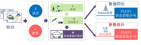 图1 陆地碳循环模型-数据融合的两种基本方法:数据同化和参数估计