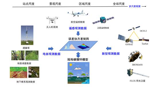 图2 多源多尺度陆地碳循环数据同化示意